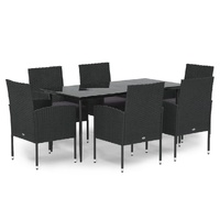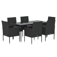 $597.05Enjoy a nice meal or afternoon tea in your outdoor space with this garden dining set! Weather-resistant material: PE rattan, also known as poly rattan, is weather resistant and easy to clean. It remains beautiful on the outside for a long period of time. It offers great quality, convenience and an aesthetic look.Sturdy frame: The powder-coated steel frames make the outdoor dining set sturdy and stable for daily outdoor use.Practical tabletop: The smooth tabletop of the dining table is made of tempered glass which is easy to clean with a damp cloth. Additionally, the sturdy tabletop is perfect for placing meals, drinks, and other decorative items.Comfortable design: Designed with curved backrests and armrests, these outdoor chairs provide maximum comfort.Extra comfort: The thickly padded cushions provide ultimate comfort during your sitting time. Note:In order to extend the life of your outdoor furniture, we recommend you to protect it with a waterproof cover.Each product comes with an assembly manual in the box for easy assembly.