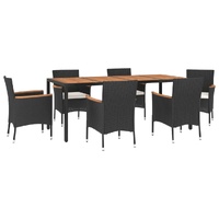 $844.43This stylish garden dining set provides you with a leisurely and comfortable time with your family and friends. Weather-resistant material: PE rattan, also known as poly rattan, is weather resistant and easy to clean. It remains beautiful on the outside for a long period of time. It offers great quality, convenience and an aesthetic look. Solid acacia wood: Solid acacia wood is a beautiful natural material. Acacia wood is a tropical hardwood, which is dense, sturdy, and durable.Sturdy and stable frame: The powder-coated steel frame of the dining set ensures sturdiness and stability. Comfortable seat experience: The thickly padded cushions of the dining chairs provide the ultimate comfort for your sitting time.Practical table: The tabletop of the dining table is made of solid acacia wood which is easy to clean with a damp cloth. Additionally, the sturdy tabletop is perfect for placing meals, drinks, and other decorative items.Flexible design: Thanks to the lightweight construction, these garden dining chairs are easy to move. Note:To make sure your outdoor furniture stays beautiful, we recommend protecting it with a waterproof cover.