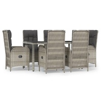 $1,203.41This trendy garden dining set, featuring an elegant and contemporary design, is a great choice for dining or relaxing in your garden. Weather-resistant material: PE rattan, also known as poly rattan, is weather resistant and easy to clean. It remains beautiful on the outside for a long period of time. It offers great quality, convenience and an aesthetic look.Sturdy frame: The powder-coated steel frames make the outdoor dining set sturdy and stable for daily outdoor use.Practical tabletop: The smooth tabletop of the garden table is made of tempered glass which is easy to clean with a damp cloth. Additionally, the sturdy tabletop is perfect for placing meals, drinks, and other decorative items.Reclining function: The garden chairs are specially designed with a reclining function so that you can adjust the backrest as per your comfort.Comfortable seat experience: The backrest adds extra seating comfort for the garden chair. Also, the thickly padded cushions provide comfort for your sitting time. Good to know:To make assembly as easy as possible, each product is delivered with a manual. Note:To make sure your outdoor furniture stays beautiful, we recommend protecting it with a waterproof cover.