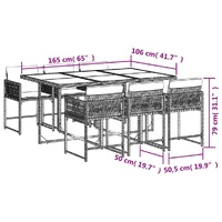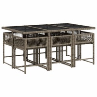 $619.37This garden dining set is a great choice for al fresco dining or just relaxing in the garden, backyard, or on the patio. Durable material: PE rattan, also known as poly rattan, is a strong, low-maintenance synthetic material that looks like natural rattan. It's lightweight, easy to clean, and commonly used for outdoor furniture due to its durability and weather-resistant properties.Compact storage: These chairs have a flap backrest that can be folded down, making it easy to store them under the table. When folded, they neatly fit under the table, forming a space-saving cube shape.Comfortable seat experience: This outdoor furniture, complete with thickly padded cushions, offers a comfortable seating experience.Removable and washable cover: These seat cushions feature removable covers for easy washing and maintenance. The cushion covers have a flap at the back for easy attachment to the backrests.Glass tabletop: The outdoor table's top is made from strong and durable tempered glass, making it easy to clean with a damp cloth and adding a touch of elegance to your outdoor space. Good to know:To make sure your outdoor furniture stays beautiful, we recommend protecting it with a waterproof cover.