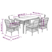 $745.85This garden dining set is a great choice for al fresco dining or just relaxing in the garden, backyard, or patio. Durable material: PE rattan, also known as poly rattan, is a strong, low-maintenance synthetic material that looks like natural rattan. It's lightweight, easy to clean, and commonly used for outdoor furniture due to its durability and weather-resistant properties.Comfortable seat experience: This outdoor furniture, complete with thickly padded cushions, offers a comfortable seating experience.Removable and washable cover: These seat cushions feature removable covers for easy washing and maintenance.Glass tabletop: The outdoor table's top is made from strong and durable tempered glass, making it easy to clean with a damp cloth and adding a touch of elegance to your outdoor space.Robust and stable frame: The powder-coated steel frame ensures the garden furniture is strong and stable for daily outdoor use. Good to know:To make sure your outdoor furniture stays beautiful, we recommend protecting it with a waterproof cover.