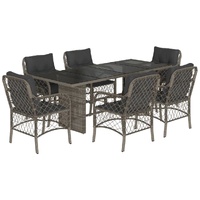 $766.31This garden dining set is a great choice for al fresco dining or just relaxing in the garden, backyard, or patio. Durable material: PE rattan, also known as poly rattan, is a strong, low-maintenance synthetic material that looks like natural rattan. It's lightweight, easy to clean, and commonly used for outdoor furniture due to its durability and weather-resistant properties.Comfortable seat experience: This outdoor furniture, complete with thickly padded cushions, offers a comfortable seating experience.Removable and washable cover: These seat cushions feature removable covers for easy washing and maintenance.Glass tabletop: The outdoor table's top is made from strong and durable tempered glass, making it easy to clean with a damp cloth and adding a touch of elegance to your outdoor space.Robust and stable frame: The powder-coated steel frame ensures the garden furniture is strong and stable for daily outdoor use. Good to know:To make sure your outdoor furniture stays beautiful, we recommend protecting it with a waterproof cover.