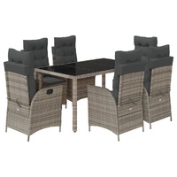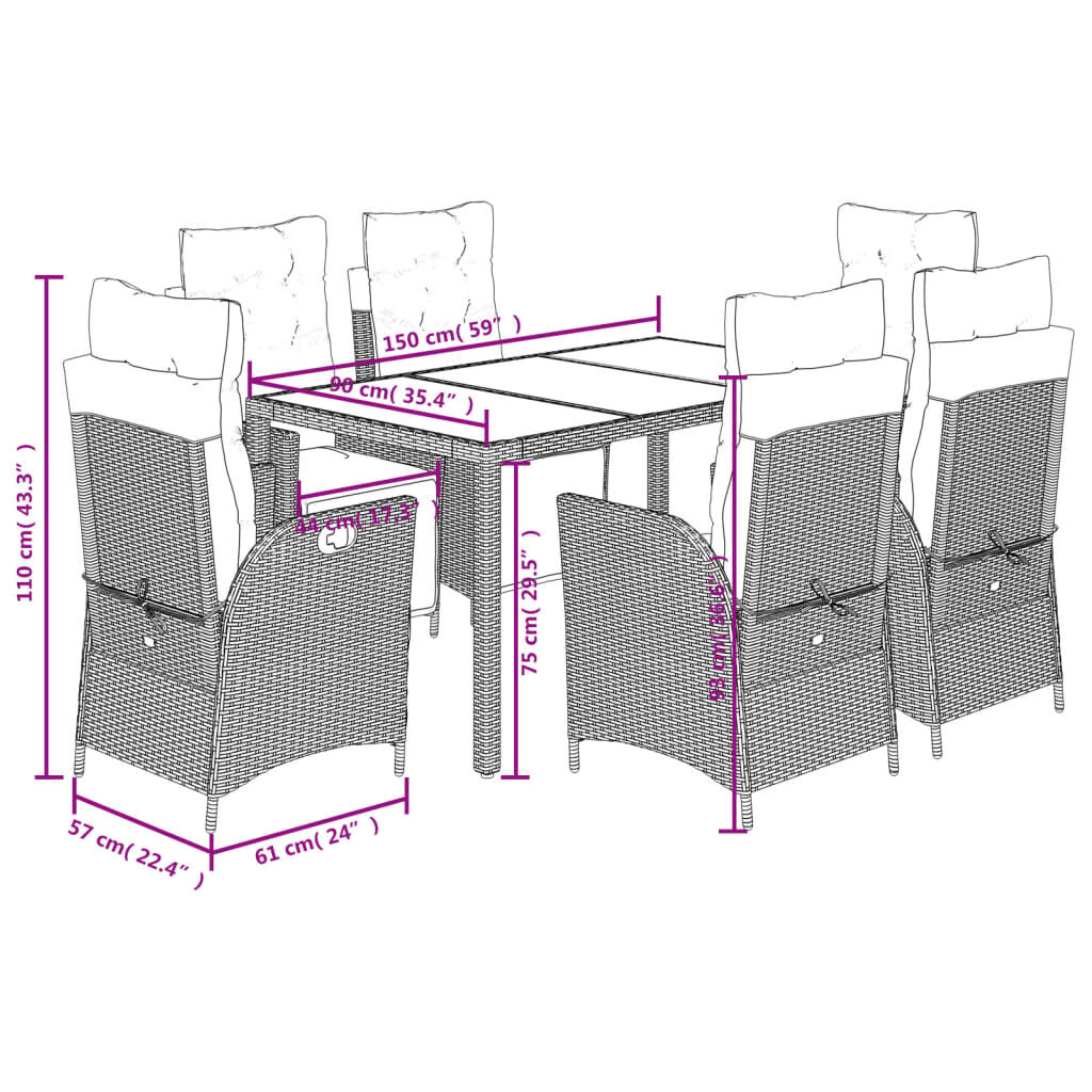$956.03This garden dining set is a great choice for al fresco dining or just relaxing in the garden, backyard, or on the patio. Durable material: PE rattan, also known as poly rattan, is a strong, low-maintenance synthetic material that looks like natural rattan. It's lightweight, easy to clean, and commonly used for outdoor furniture due to its durability and weather-resistant properties.Adjustable backrest: This garden seat has a handle. You can adjust the backrest to any position by pulling the handle, and quickly return it to its original position.Comfortable seat experience: This outdoor furniture, complete with thickly padded cushions, offers a comfortable seating experience.Removable and washable cover: These seat cushions feature removable covers for easy washing and maintenance. The back cushions have a flap at the back for easy attachment to the backrests.Glass tabletop: The outdoor table's top is made from strong and durable tempered glass, making it easy to clean with a damp cloth and adding a touch of elegance to your outdoor space. Good to know: To make sure your outdoor furniture stays beautiful, we recommend protecting it with a waterproof cover.