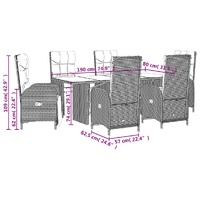 7 Piece Garden Dining Set with Cushions Grey Poly Rattan