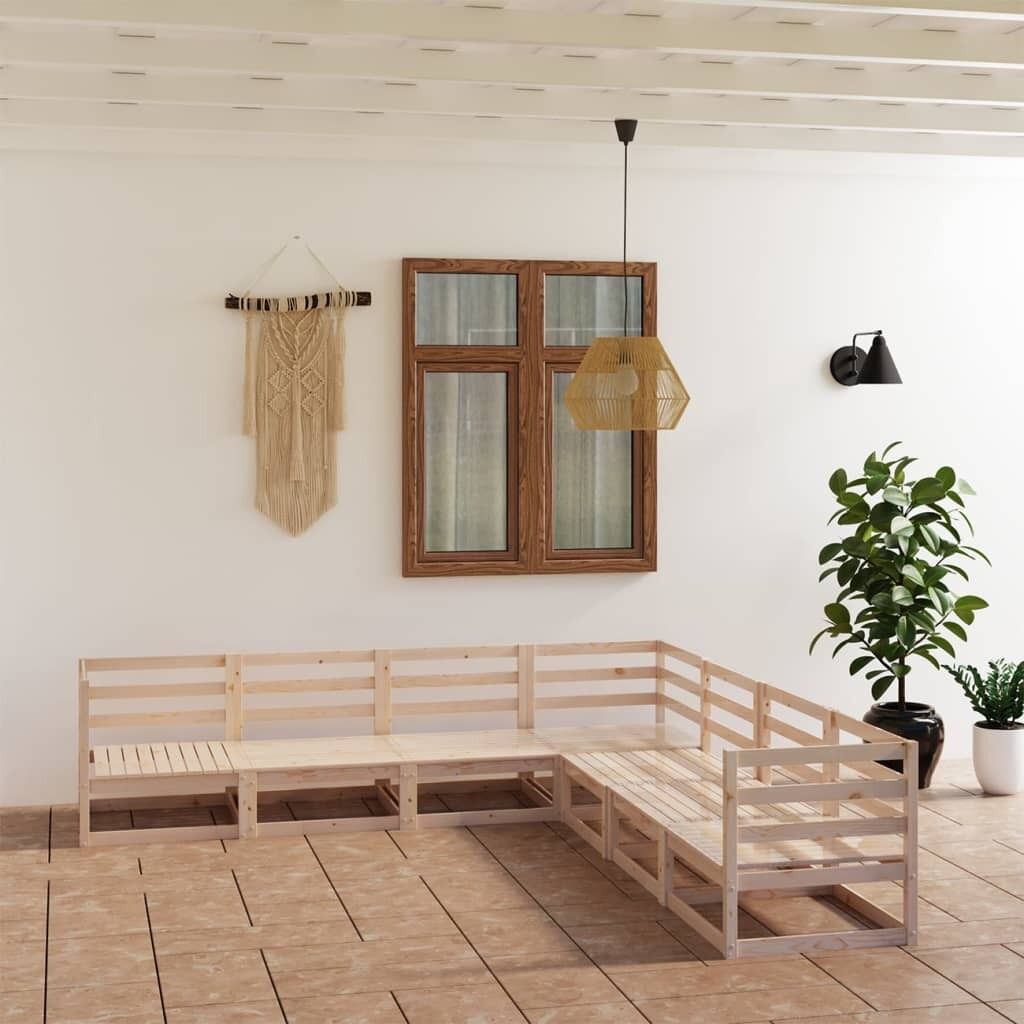 NOW $637.97This classic solid pinewood garden lounge set is an excellent choice for you to relax and enjoy the weather, take a nap, or chat with your family or friends. The sofa set is made of solid pinewood, making it sturdy and stable. This set has a solid construction and requires little maintenance. With a timeless pallet design, this set adds a touch of rustic charm to your living space. Note: In order to extend the life of your outdoor furniture, we recommend you to clean it regularly and do not leave it outdoors without protection unnecessarily.Clean: Use a mild soap solution.Storing: If possible, store in a cool, dry place indoors. If the product is stored outdoors, protect it with a waterproof cover. Wipe and dry the excess water or snow from flat surfaces after a rain or snowfall. Allow sufficient air circulation to avoid moisture-related damage.