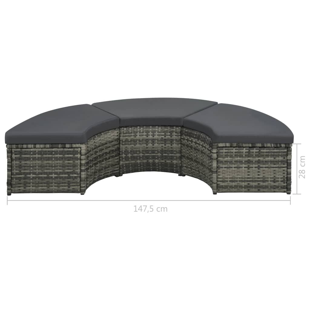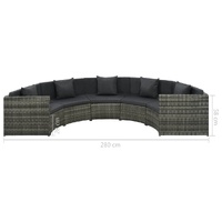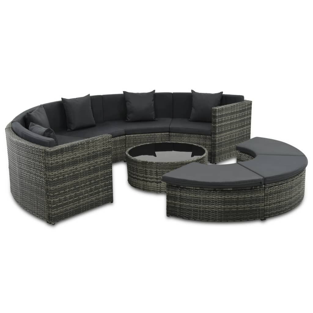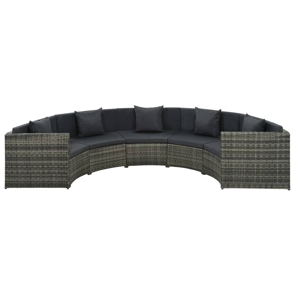 $869.39This poly rattan sofa set, consisting of 3 centre sofas, 2 corner sofas, 1 coffee table, 1 stool, 5 back pillows and 13 cushions, will offer a stylish seating area for your garden or patio. Thanks to the water-resistant PE rattan, the patio sofa set is easy to clean, hardwearing and suitable for daily outdoor use. The powder-coated steel frames make the set sturdy and stable, but since the construction is also lightweight, all items are easy to move around to suit any setting. These modular sofas can be combined into a large bed with the half-round stool. This set is also delivered with the highly comfortable, thickly-padded cushions and back pillows for the ultimate comfort. The low-maintenance polyester covers can also be removed and washed. This set needs assembly. Note: We recommend covering the set during rain, snow and frost for its best service to last.