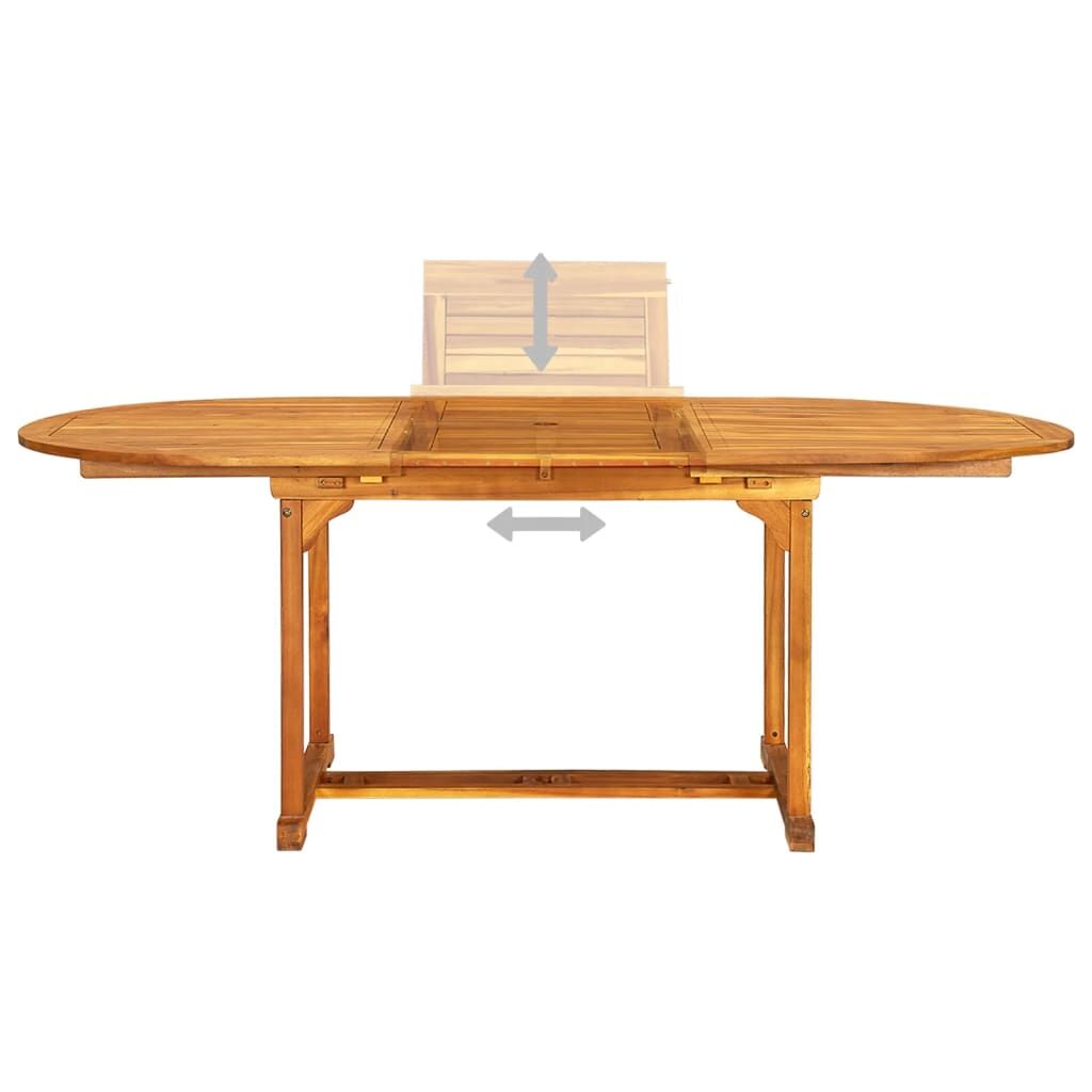 $1,119.67This stylish and contemporary wooden dining set consists of 1 oval extension table and 6 folding chairs and will be a great choice for al fresco dining in the garden or patio. Our wooden garden furniture set will be the focal point of your garden, terrace or patio. The extendable dining table is made of high-quality acacia wood, a tropical hardwood, which is weather-resistant and durable. The dark oil finished surface is also easy to clean with a damp cloth. The chairs can be adjusted in 5 positions and have a smooth, soft-to-the-touch, weather-resistant texilene top, so you can always find the most comfortable seating position. The table and the chairs can be folded to save space when not in use. Delivery includes 1 oval extendable table and 6 folding chairs.