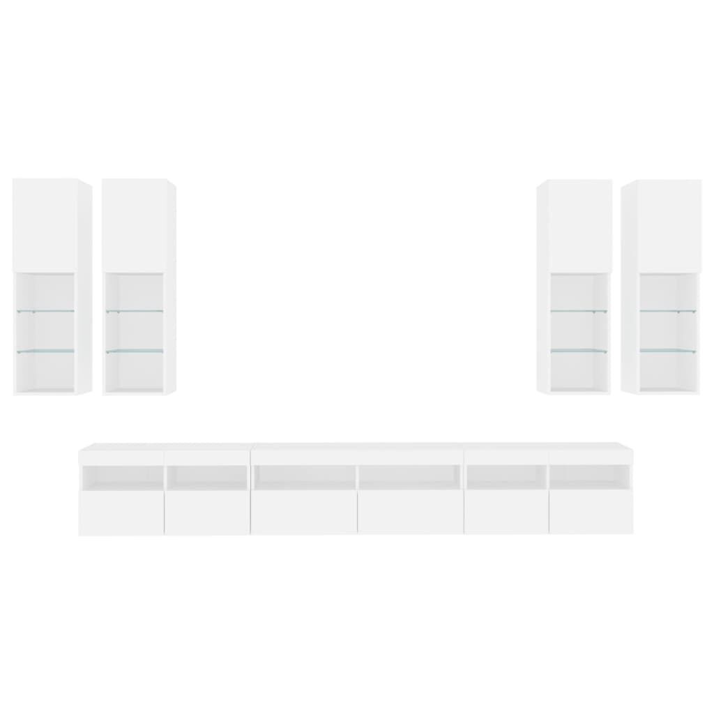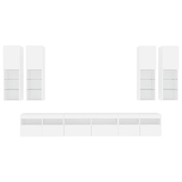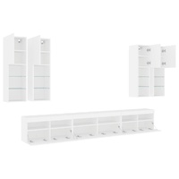$592.40This TV wall cabinet set is a perfect solution for your living space to maximise space and keep the floor areas uncluttered. Sturdy material: The engineered wood is of exceptional quality with a smooth surface and also features strength, stability and resistance to moisture.RGB LED lights: The wall media unit is equipped with vibrant RGB LED lights. With various customisable menus, you can effortlessly change the colour of the lights and even set them to adjust automatically. These LED lights not only enhance the contemporary look of the floating TV unit but also add to its trendy appeal.Wall-mounted design: The LED cabinet can be wall-mounted to add extra storage space. That way, you can maximise your floor space and keep the area clean.Ample storage space: The TV wall unit provides ample space to store your daily essentials such as books, DVDs, magazines, media supplies and other items neatly organised and within easy reach.Versatile design: You can use it as a TV cabinet or mount it on the workplace wall for convenient storage of tools or other miscellaneous items. Also, it transforms an empty wall into a design feature. Good to know:Screws and plugs for inside the wall are not included. We advise to find and use screws and plugs suitable specifically for your walls. If you're not sure, you can consult with a professional. Please read and follow each step of the instructions.The product has a USB connector that requires a certified 5V USB power source (not included).