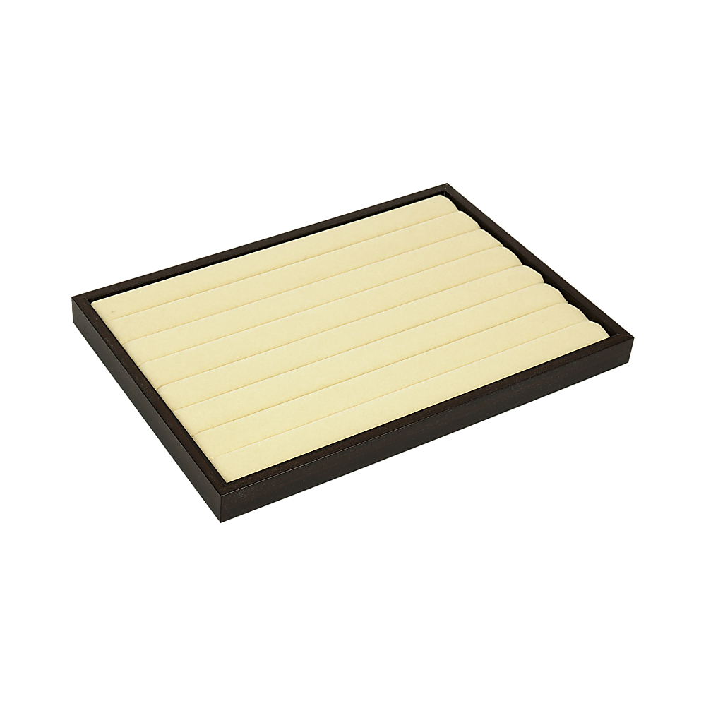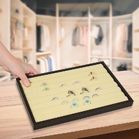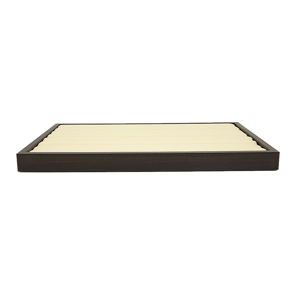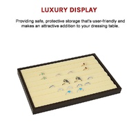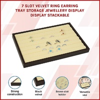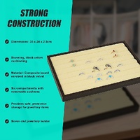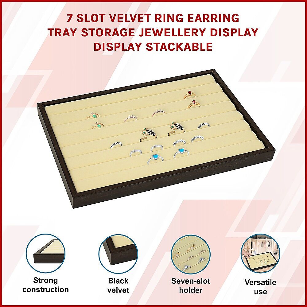 Each tray features seven velvet-covered slots that are spaced to securely hold rings, earrings and other small jewellery items in an organised manner. The pieces really stand out against the black backdrop, so it's easy to see the details of each piece. If you've got a larger jewellery collection, multiple trays can be stacked to provide space-saving storage.