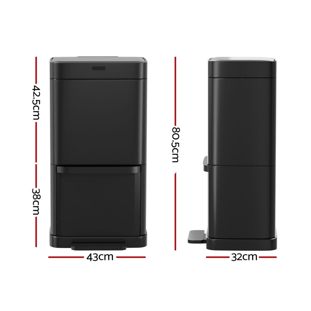 $154.75Keep your home clean, tidy and germ-free with a Devanti Recycling Motion Sensor Bin. Activated by just the wave of your hand (within a 20cm range) and a hands-free foot pedal, the motion sensor bin makes it easy to dispose of your trash cleanly and hygienically. With a large 70L capacity, you won't need to clear your bin immediately to make room for more trash. The bin is divided into two compartments so you can dispose of your trash and recycling separately. A removable divider for the top compartment helps keep your different recycling needs separate. A fingerprint-resistant black surface keeps your kitchen looking shiny and bright. No more worrying about the bin liner moving out of position with the convenient liner holder. The soft opening and closing make the bin completely noise-free. Keep your home (and the planet) clean and clear with a Recycling Motion Sensor Bin from Devanti.