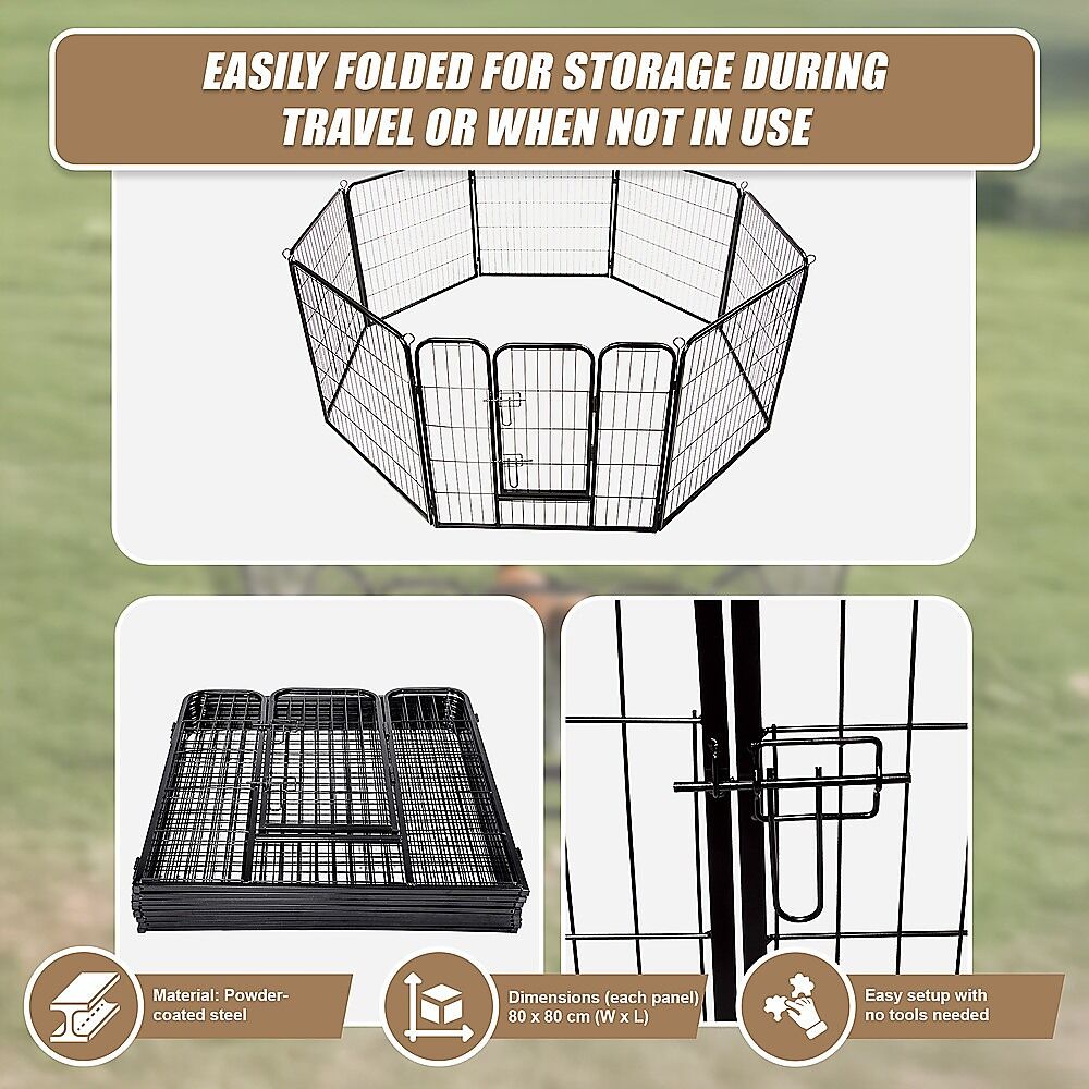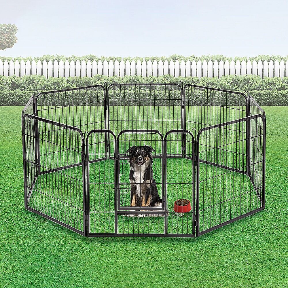 If you plan to have guests arrive and need to keep your pet contained while you clean the house, this pet playpen is the ideal alternative to a crate. It allows your pet the freedom to move around yet keeps her out of trouble as you move from room to room, tidying up each space. At 80cm high, this pet playpen works well for most pets. Even good jumpers won't usually bother with trying to escape they have all the space they need inside the pen to run and play. Crafted from powder-coated steel, this pen can hold up under whatever bumps and head-butts your furry friend dishes out. A bolt latch access door and two locks keep your pet safe inside, while its round edges prevent injury in pets trying to get out.