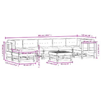 $1,051.15This wooden garden lounge set, standing out with the slatted design and soft cushions, will make a great addition to your garden, patio, or terrace for enjoying a cosy time with your family or friends. Solid pine wood: Solid pine wood is a beautiful natural material. Pine wood has a straight grain, and the knots give the material its signature, rustic look.Sturdy and stable frame: The wooden frame makes the lounge set sturdy and stable for daily outdoor use.Comfortable seat experience: The backrest and armrest add extra seating comfort for the garden furniture set. Also, the thickly padded cushions provide comfort for your sitting time.Modular design: The sofa set is flexible and easy to move around. You can combine it with other modular segments in the webshop to create your own personal garden lounge set configurations! Good to know:To make sure your outdoor furniture stays beautiful, we recommend protecting it with a waterproof cover.