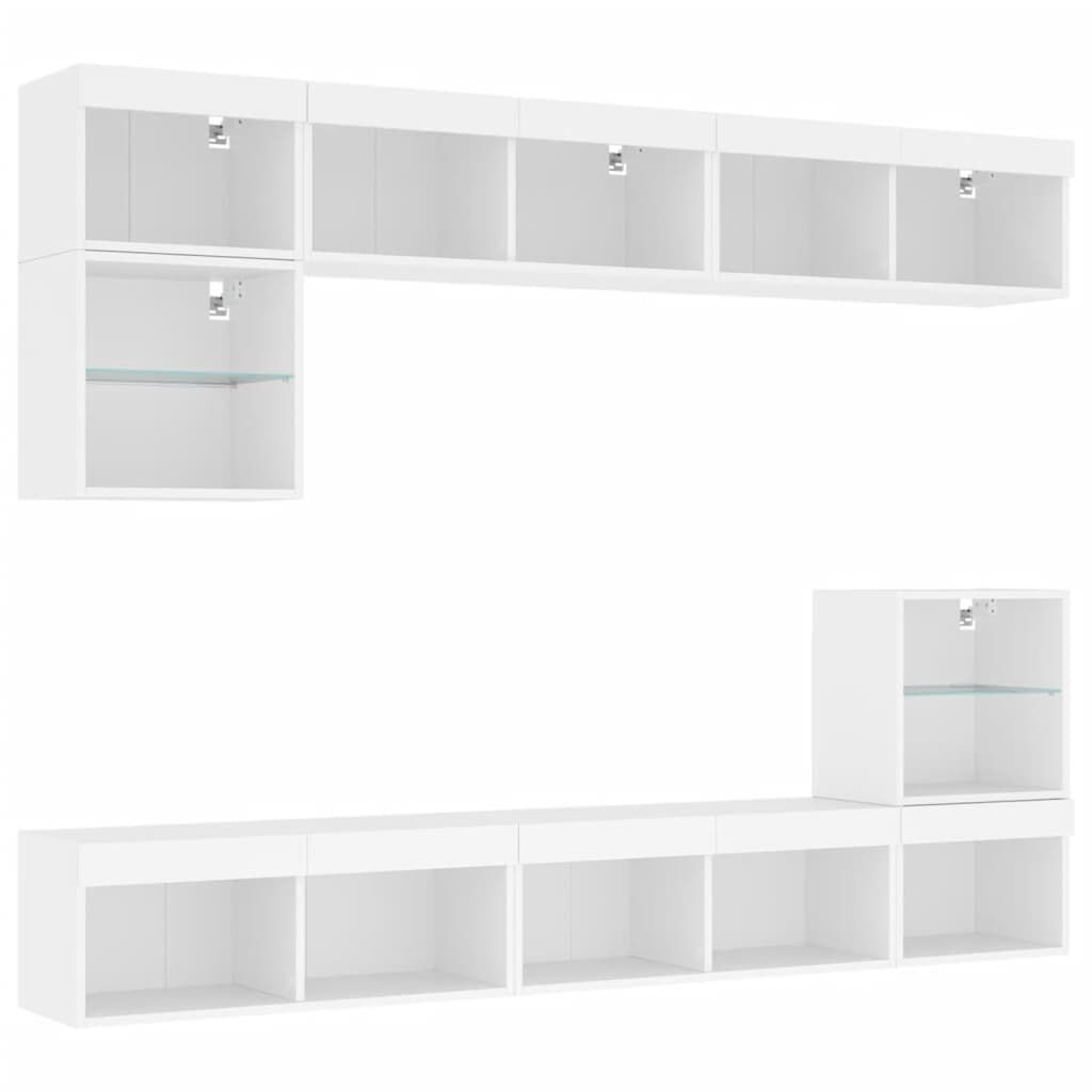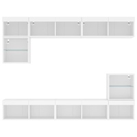 $324.56These TV wall units are the perfect solution for your living space to maximise space and keep the floor areas uncluttered. Sturdy material: The engineered wood is of exceptional quality with a smooth surface and also features strength, stability and resistance to moisture.RGB LED lights: The TV unit is equipped with vibrant RGB LED lights. With various customisable menus, you can effortlessly change the colour of the lights and even set them to adjust automatically. These LED lights not only enhance the contemporary look of the floating TV cabinet but also add to its trendy appeal.Wall-mounted design: The television unit can be wall-mounted to add extra storage space. That way, you can maximise your floor space and keep the area clean.Ample storage space: The floating TV unit provides ample space to store your daily essentials such as books, DVDs, magazines, media supplies and other items neatly organised and within easy reach.Versatile design: You can use it as a TV cabinet or mount it on the workplace wall for convenient storage of tools or other miscellaneous items. Also, it transforms an empty wall into a design feature. Good to know:Screws and plugs for inside the wall are not included. We advise to find and use screws and plugs suitable specifically for your walls. If you're not sure, you can consult with a professional. Please read and follow each step of the instructions.The product has a USB connector that requires a certified 5V USB power source (not included).
