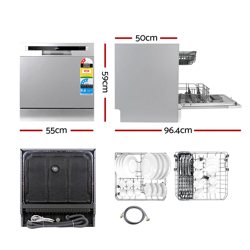 The quiet-operation benchtop dishwasher features eight place settings and six cleaning programs, from intensive to rapid, and a delay start function for that perfect wash. The easy-to-use LED screen display easily guides you along with clear setting indicators for effortlessly dishwashing. Not least, it comes with all the accessories to accommodate your various kitchen, dining and cooking wares and you easily add in left-out dishes to the washing cycle.