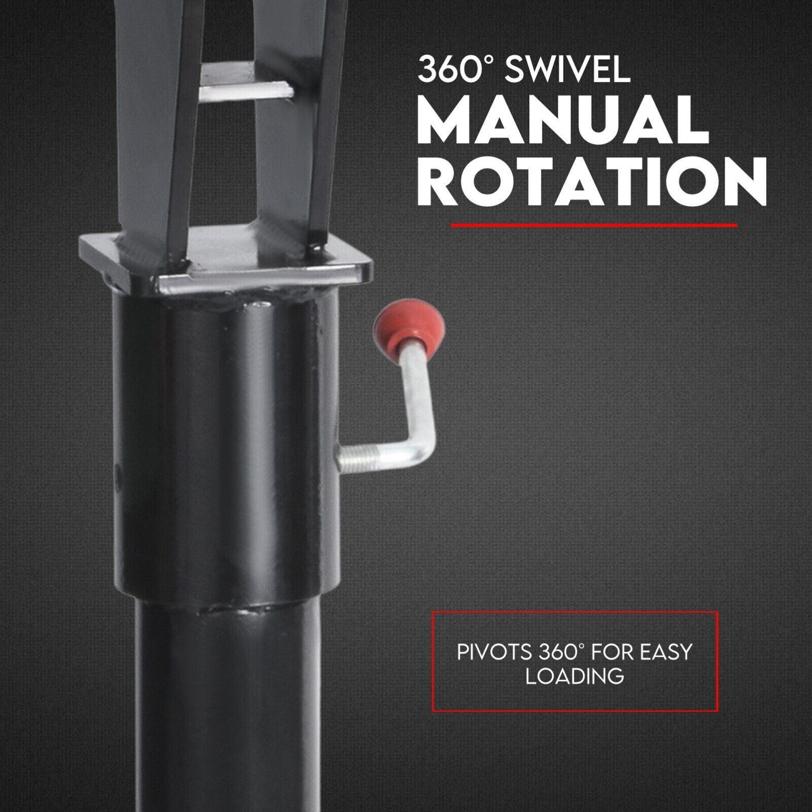 The swivel crane hoist has a small footprint, with a base that only takes up 250 mm x 250 mm of space.