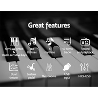 $294.49Love playing and singing to your favourite songs? Well, let our Alpha 88-key Portable Keyboard EK-881 help to realise your musical aspirations. With its 88 touch-sensitive keys, the portable keyboard enables you to discover a whole new world of music with exceptional built-in advanced features such as 140 timbres, 6 rhythms, 16 demo songs, various effect controls and many more. The split function allows you to split the keyboard into two sections to play two different voices or to play with another person on the same keyboard – perfect for lessons or duets. With the included sustain pedal, you can sustain longer notes, or you can choose to connect your own 3-in-1 pedal (not included) to simulate various piano-like sound effects and embellish your performance. There is also a MIDI output terminal at the back for you to connect a computer or another electronic musical instrument. Not least, with its headphones jack, the keyboard allows you to play silently without disrupting family or neighbours. An adjustable keyboard stand and music sheet holder come included as standard. With so much going for the Alpha 88-key Portable Keyboard EK-881, it will surely bring out the creative melody maker in you.