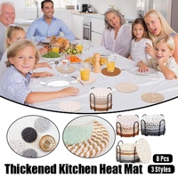 8PCS Round Cotton Woven Coaster Heat Resistant Thick Insulation Dining Table Mat - Mixed
