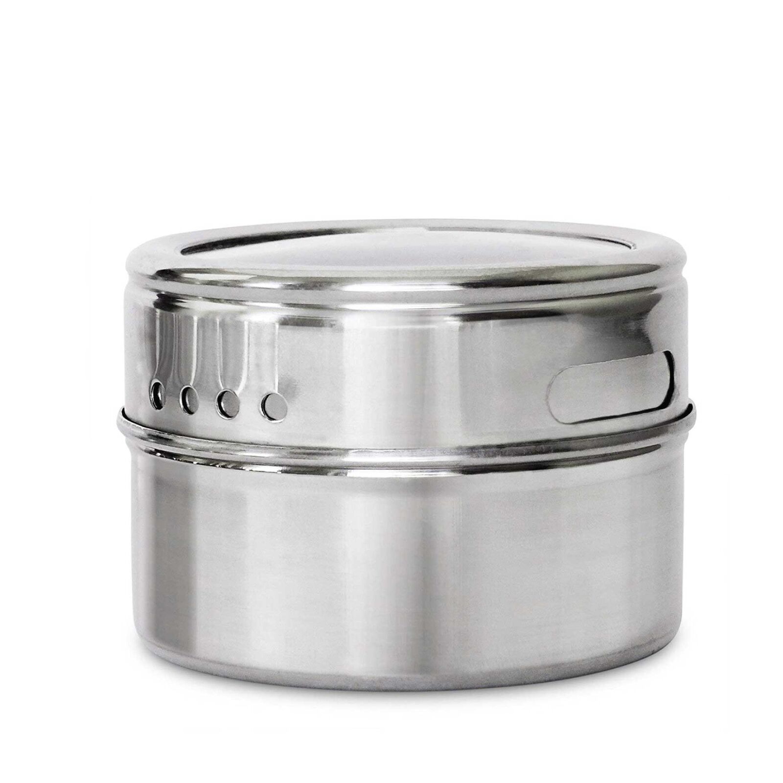 $51.29Spice up your cooking with this stainless steel spice jar rack set. The tins feature a shaker lid and magnetic base, and come with a metal plate and stand, ready to bedisplayed on the kitchen counter. Fill the jars up with your favourite spices or teas for easy application and storage.
