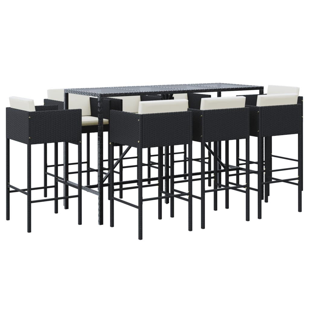 9 Piece Garden Bar Set with Cushions Black Poly Rattan