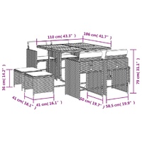 $604.49This garden dining set is a great choice for al fresco dining or just relaxing in the garden, backyard, or on the patio. Durable material: PE rattan, also known as poly rattan, is a strong, low-maintenance synthetic material that looks like natural rattan. It's lightweight, easy to clean, and commonly used for outdoor furniture due to its durability and weather-resistant properties.Compact storage: These chairs have a flap backrest that can be folded down, making it easy to store them under the table. When folded, they neatly fit under the table, forming a space-saving cube shape. Additionally, the stools can also be stored under the chairs, further maximizing space efficiency.Comfortable seat experience: This outdoor furniture, complete with thickly padded cushions, offers a comfortable seating experience.Removable and washable cover: These seat cushions feature removable covers for easy washing and maintenance. The chair cushion covers have a flap at the back for easy attachment to the chairs.Stable and easy-to-clean tabletop: This garden table has an acacia wood top that is sturdy, durable, and easy to clean with a damp cloth. Good to know: To make sure your outdoor furniture stays beautiful, we recommend protecting it with a waterproof cover.