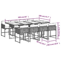 $772.19This garden dining set is a great choice for al fresco dining or just relaxing in the garden, backyard, or on the patio. Durable material: PE rattan, also known as poly rattan, is a strong, low-maintenance synthetic material that looks like natural rattan. It's lightweight, easy to clean, and commonly used for outdoor furniture due to its durability and weather-resistant properties.Compact storage: These chairs have a flap backrest that can be folded down, making it easy to store them under the table. When folded, they neatly fit under the table, forming a space-saving cube shape.Comfortable seat experience: This outdoor furniture, complete with thickly padded cushions, offers a comfortable seating experience.Removable and washable cover: These seat cushions feature removable covers for easy washing and maintenance. The cushion covers have a flap at the back for easy attachment to the backrests.Glass tabletop: The outdoor table's top is made from strong and durable tempered glass, making it easy to clean with a damp cloth and adding a touch of elegance to your outdoor space. Good to know:To make sure your outdoor furniture stays beautiful, we recommend protecting it with a waterproof cover.