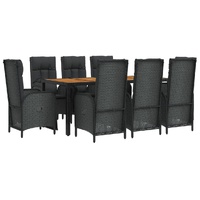 $1,619.12This trendy garden dining set, featuring an elegant and contemporary design, is a great choice for dining or relaxing in your garden. Weather-resistant material: PE rattan, also known as poly rattan, is weather resistant and easy to clean. It remains beautiful on the outside for a long period of time. It offers great quality, convenience and an aesthetic look.Sturdy frame: The powder-coated steel frames make the outdoor dining set sturdy and stable for daily outdoor use.Practical tabletop: The solid acacia wood tabletop is perfect for placing drinks, food and decorations. It's beautiful in appearance and easy to clean.Reclining function: The garden chairs are specially designed with a reclining function so that you can adjust the backrest as per your comfort.Comfortable seat experience: The backrest adds extra seating comfort for the garden chair. Also, the thickly padded cushions provide comfort for your sitting time. Good to know:To make assembly as easy as possible, each product is delivered with a manual. Note:To make sure your outdoor furniture stays beautiful, we recommend protecting it with a waterproof cover.