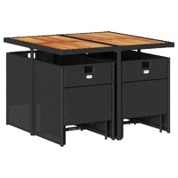 $613.79This garden dining set is a great choice for al fresco dining or just relaxing in the garden, backyard, or on the patio. Durable material: PE rattan, also known as poly rattan, is a strong, low-maintenance synthetic material that looks like natural rattan. It's lightweight, easy to clean, and commonly used for outdoor furniture due to its durability and weather-resistant properties.Compact storage: These chairs have a flap backrest that can be folded down, making it easy to store them under the table. When folded, they neatly fit under the table, forming a space-saving cube shape. Additionally, the stools can also be stored under the chairs, further maximising space efficiency. Comfortable seat experience: This outdoor furniture, complete with thickly padded cushions, offers a comfortable seating experience.Removable and washable cover: These seat cushions feature removable covers for easy washing and maintenance.Stable and easy-to-clean tabletop: This garden table has an acacia wood top that is sturdy, durable, and easy to clean with a damp cloth. Good to know: To make sure your outdoor furniture stays beautiful, we recommend protecting it with a waterproof cover.