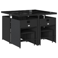 $515.21This garden dining set is a great choice for al fresco dining or just relaxing in the garden, backyard, or on the patio. Durable material: PE rattan, also known as poly rattan, is a strong, low-maintenance synthetic material that looks like natural rattan. It's lightweight, easy to clean, and commonly used for outdoor furniture due to its durability and weather-resistant properties.Compact storage: These chairs have a flap backrest that can be folded down, making it easy to store them under the table. When folded, they neatly fit under the table, forming a space-saving cube shape. Additionally, the stools can also be stored under the chairs, further maximizing space efficiency.Comfortable seat experience: This outdoor furniture, complete with thickly padded cushions, offers a comfortable seating experience.Removable and washable cover: These seat cushions feature removable covers for easy washing and maintenance. The chair cushion covers have a flap at the back for easy attachment to the chairs.Stable and easy-to-clean tabletop: This garden table has a tempered glass table top that is sturdy, durable, and easy to clean with a damp cloth. Good to know: To make sure your outdoor furniture stays beautiful, we recommend protecting it with a waterproof cover.