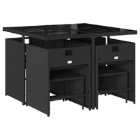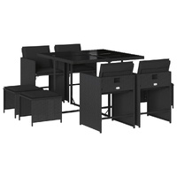$485.45This garden dining set is a great choice for al fresco dining or just relaxing in the garden, backyard, or on the patio. Durable material: PE rattan, also known as poly rattan, is a strong, low-maintenance synthetic material that looks like natural rattan. It's lightweight, easy to clean, and commonly used for outdoor furniture due to its durability and weather-resistant properties.Compact storage: These chairs have a flap backrest that can be folded down, making it easy to store them under the table. When folded, they neatly fit under the table, forming a space-saving cube shape. Additionally, the stools can also be stored under the chairs, further maximizing space efficiency.Comfortable seat experience: This outdoor furniture, complete with thickly padded cushions, offers a comfortable seating experience.Removable and washable cover: These seat cushions feature removable covers for easy washing and maintenance. The chair cushion covers have a flap at the back for easy attachment to the chairs.Stable and easy-to-clean tabletop: This garden table has a tempered glass table top that is sturdy, durable, and easy to clean with a damp cloth. Good to know: To make sure your outdoor furniture stays beautiful, we recommend protecting it with a waterproof cover.