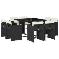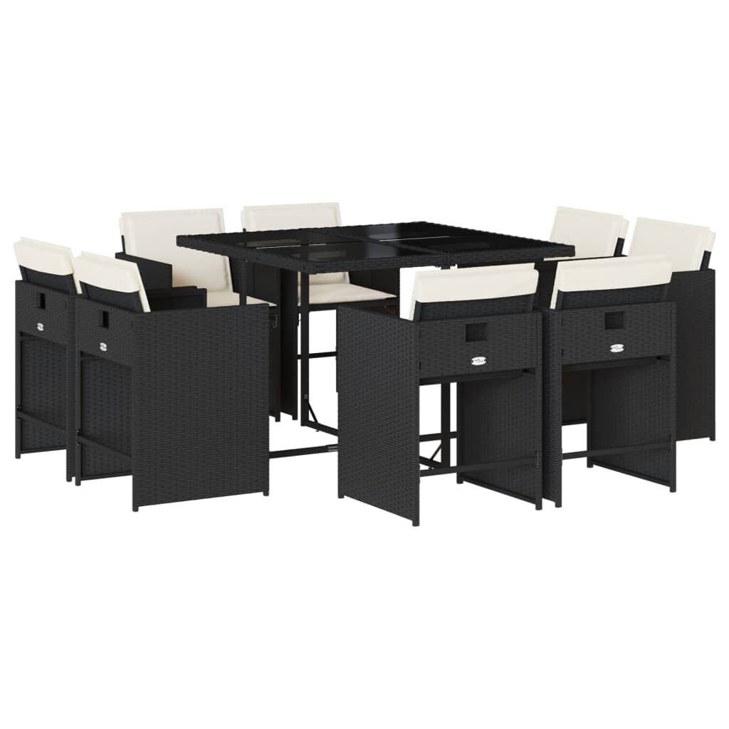 $616.58This garden dining set is a great choice for al fresco dining or just relaxing in the garden, backyard, or on the patio. Durable material: PE rattan, also known as poly rattan, is a strong, low-maintenance synthetic material that looks like natural rattan. It's lightweight, easy to clean, and commonly used for outdoor furniture due to its durability and weather-resistant properties.Compact storage: These chairs have a flap backrest that can be folded down, making it easy to store them under the table. When folded, they neatly fit under the table, forming a space-saving cube shape.Comfortable seat experience: This outdoor furniture, complete with thickly padded cushions, offers a comfortable seating experience.Removable and washable cover: These seat cushions feature removable covers for easy washing and maintenance. The chair cushion covers have a flap at the back for easy attachment to the chairs.Stable and easy-to-clean tabletop: This garden table has a tempered glass table top that is sturdy, durable, and easy to clean with a damp cloth. Good to know: To make sure your outdoor furniture stays beautiful, we recommend protecting it with a waterproof cover.