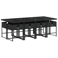 $851.87This garden dining set is a great choice for al fresco dining or just relaxing in the garden, backyard, or on the patio. Durable material: PE rattan, also known as poly rattan, is a strong, low-maintenance synthetic material that looks like natural rattan. It's lightweight, easy to clean, and commonly used for outdoor furniture due to its durability and weather-resistant properties.Compact storage: These chairs have a flap backrest that can be folded down, making it easy to store them under the table. When folded, they neatly fit under the table, forming a space-saving cube shape.Comfortable seat experience: This outdoor furniture, complete with thickly padded cushions, offers a comfortable seating experience.Removable and washable cover: These seat cushions feature removable covers for easy washing and maintenance. The cushion covers have a flap at the back for easy attachment to the backrests.Glass tabletop: The outdoor table's top is made from strong and durable tempered glass, making it easy to clean with a damp cloth and adding a touch of elegance to your outdoor space. Good to know:To make sure your outdoor furniture stays beautiful, we recommend protecting it with a waterproof cover.