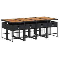 $1,084.37This garden dining set is a great choice for al fresco dining or just relaxing in the garden, backyard, or on the patio. Durable material: PE rattan, also known as poly rattan, is a strong, low-maintenance synthetic material that looks like natural rattan. It's lightweight, easy to clean, and commonly used for outdoor furniture due to its durability and weather-resistant properties.Compact storage: These chairs have a flap backrest that can be folded down, making it easy to store them under the table. When folded, they neatly fit under the table, forming a space-saving cube shape.Comfortable seat experience: This outdoor furniture, complete with thickly padded cushions, offers a comfortable seating experience.Removable and washable cover: These seat cushions feature removable covers for easy washing and maintenance. The cushion covers have a flap at the back for easy attachment to the backrests.Stable and easy-to-clean tabletop: This garden table has an acacia wood top that is sturdy, durable, and easy to clean with a damp cloth. Good to know:To make sure your outdoor furniture stays beautiful, we recommend protecting it with a waterproof cover.