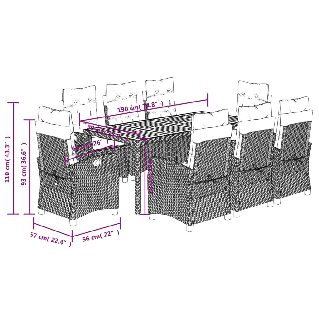 $1,425.68This garden dining set is a great choice for al fresco dining or just relaxing in the garden, backyard, or patio. Durable material: PE rattan, also known as poly rattan, is a strong, low-maintenance synthetic material that looks like natural rattan. It's lightweight, easy to clean, and commonly used for outdoor furniture due to its durability and weather-resistant properties. Adjustable backrest: This garden seat has a handle. You can adjust the backrest to any position by pulling the handle, and quickly return it to its original position.Stable and easy-to-clean tabletop: This garden table has an acacia wood top that is sturdy, durable, and easy to clean with a damp cloth. Comfortable seat experience: This outdoor furniture, complete with thickly padded cushions, offers a comfortable seating experience. Removable and washable cover: These seat cushions feature removable covers for easy washing and maintenance. Good to know:To make sure your outdoor furniture stays beautiful, we recommend protecting it with a waterproof cover.