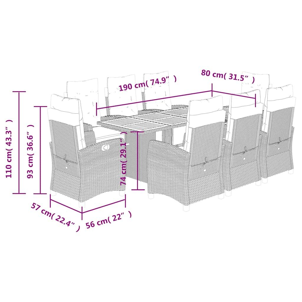 $1,533.56This garden dining set is a great choice for al fresco dining or just relaxing in the garden, backyard, or patio. Durable material: PE rattan, also known as poly rattan, is a strong, low-maintenance synthetic material that looks like natural rattan. It's lightweight, easy to clean, and commonly used for outdoor furniture due to its durability and weather-resistant properties.Adjustable backrest and footrest: This garden seat has a handle. You can adjust the backrest and footrest to any position by pulling the handle, and quickly return them to their original positions.Stable and easy-to-clean tabletop: This garden table has an acacia wood top that is sturdy, durable, and easy to clean with a damp cloth.Comfortable seat experience: This outdoor furniture, complete with thickly padded cushions, offers a comfortable seating experience.Removable and washable cover: These seat cushions feature removable covers for easy washing and maintenance. Good to know:To make sure your outdoor furniture stays beautiful, we recommend protecting it with a waterproof cover.