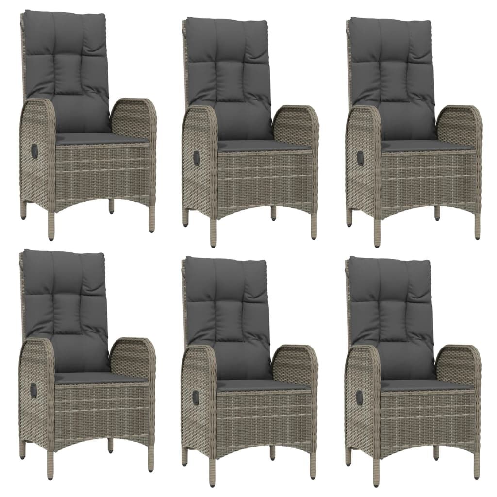 $1,558.67This trendy garden dining set, featuring an elegant and contemporary design, is a great choice for dining or relaxing in your garden. Weather-resistant material: PE rattan, also known as poly rattan, is weather resistant and easy to clean. It remains beautiful on the outside for a long period of time. It offers great quality, convenience and an aesthetic look.Sturdy frame: The powder-coated steel frames make the outdoor dining set sturdy and stable for daily outdoor use.Practical tabletop: The solid acacia wood tabletop is perfect for placing drinks, food and decorations. It's beautiful in appearance and easy to clean.Reclining function: The garden chairs are specially designed with a reclining function so that you can adjust the backrest as per your comfort.Comfortable seat experience: The backrest adds extra seating comfort for the garden chair. Also, the thickly padded cushions provide comfort for your sitting time. Good to know:To make assembly as easy as possible, each product is delivered with a manual. Note:To make sure your outdoor furniture stays beautiful, we recommend protecting it with a waterproof cover.