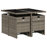 $590.54This garden dining set is a great choice for al fresco dining or just relaxing in the garden, backyard, or on the patio. Durable material: PE rattan, also known as poly rattan, is a strong, low-maintenance synthetic material that looks like natural rattan. It's lightweight, easy to clean, and commonly used for outdoor furniture due to its durability and weather-resistant properties.Compact storage: These chairs have a flap backrest that can be folded down, making it easy to store them under the table. When folded, they neatly fit under the table, forming a space-saving cube shape. Additionally, the stools can also be stored under the chairs, further maximising space efficiency. Comfortable seat experience: This outdoor furniture, complete with thickly padded cushions, offers a comfortable seating experience.Removable and washable cover: These seat cushions feature removable covers for easy washing and maintenance.Glass tabletop: The outdoor table's top is made from strong and durable tempered glass, making it easy to clean with a damp cloth and adding a touch of elegance to your outdoor space. Good to know: To make sure your outdoor furniture stays beautiful, we recommend protecting it with a waterproof cover.