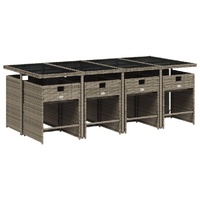 $729.11This garden dining set is a great choice for al fresco dining or just relaxing in the garden, backyard, or on the patio. Durable material: PE rattan, also known as poly rattan, is a strong, low-maintenance synthetic material that looks like natural rattan. It's lightweight, easy to clean, and commonly used for outdoor furniture due to its durability and weather-resistant properties.Compact storage: These chairs have a flap backrest that can be folded down, making it easy to store them under the table. When folded, they neatly fit under the table, forming a space-saving cube shape.Comfortable seat experience: This outdoor furniture, complete with thickly padded cushions, offers a comfortable seating experience.Removable and washable cover: These seat cushions feature removable covers for easy washing and maintenance. The chair cushion covers have a flap at the back for easy attachment to the chairs.Stable and easy-to-clean tabletop: This garden table has a tempered glass table top that is sturdy, durable, and easy to clean with a damp cloth. Good to know: To make sure your outdoor furniture stays beautiful, we recommend protecting it with a waterproof cover.