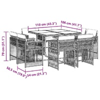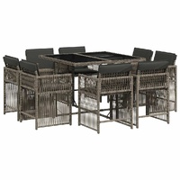 9 Piece Garden Dining Set with Cushions Grey Poly Rattan