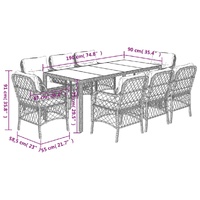 $943.01This garden dining set is a great choice for al fresco dining or just relaxing in the garden, backyard, or patio. Durable material: PE rattan, also known as poly rattan, is a strong, low-maintenance synthetic material that looks like natural rattan. It's lightweight, easy to clean, and commonly used for outdoor furniture due to its durability and weather-resistant properties.Comfortable seat experience: This outdoor furniture, complete with thickly padded cushions, offers a comfortable seating experience.Removable and washable cover: These seat cushions feature removable covers for easy washing and maintenance.Glass tabletop: The outdoor table's top is made from strong and durable tempered glass, making it easy to clean with a damp cloth and adding a touch of elegance to your outdoor space.Robust and stable frame: The powder-coated steel frame ensures the garden furniture is strong and stable for daily outdoor use. Good to know:To make sure your outdoor furniture stays beautiful, we recommend protecting it with a waterproof cover.