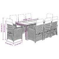 $1,188.53This garden dining set is a great choice for al fresco dining or just relaxing in the garden, backyard, or on the patio. Durable material: PE rattan, also known as poly rattan, is a strong, low-maintenance synthetic material that looks like natural rattan. It's lightweight, easy to clean, and commonly used for outdoor furniture due to its durability and weather-resistant properties.Adjustable backrest: This garden seat has a handle. You can adjust the backrest to any position by pulling the handle, and quickly return it to its original position.Comfortable seat experience: This outdoor furniture, complete with thickly padded cushions, offers a comfortable seating experience.Removable and washable cover: These seat cushions feature removable covers for easy washing and maintenance. The back cushions have a flap at the back for easy attachment to the backrests.Glass tabletop: The outdoor table's top is made from strong and durable tempered glass, making it easy to clean with a damp cloth and adding a touch of elegance to your outdoor space. Good to know:To make sure your outdoor furniture stays beautiful, we recommend protecting it with a waterproof cover.