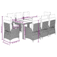 $1,219.22This garden dining set is a great choice for al fresco dining or just relaxing in the garden, backyard, or on the patio. Durable material: PE rattan, also known as poly rattan, is a strong, low-maintenance synthetic material that looks like natural rattan. It's lightweight, easy to clean, and commonly used for outdoor furniture due to its durability and weather-resistant properties.Adjustable backrest: This garden seat has a handle. You can adjust the backrest to any position by pulling the handle, and quickly return it to its original position.Comfortable seat experience: This outdoor furniture, complete with thickly padded cushions, offers a comfortable seating experience.Removable and washable cover: These seat cushions feature removable covers for easy washing and maintenance. The back cushions have a flap at the back for easy attachment to the backrests.Glass tabletop: The outdoor table's top is made from strong and durable tempered glass, making it easy to clean with a damp cloth and adding a touch of elegance to your outdoor space. Good to know: To make sure your outdoor furniture stays beautiful, we recommend protecting it with a waterproof cover.