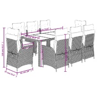 $1,408.49This garden dining set is a great choice for al fresco dining or just relaxing in the garden, backyard, or patio. Durable material: PE rattan, also known as poly rattan, is a strong, low-maintenance synthetic material that looks like natural rattan. It's lightweight, easy to clean, and commonly used for outdoor furniture due to its durability and weather-resistant properties.Adjustable backrest and footrest: This garden seat has a handle. You can adjust the backrest and footrest to any position by pulling the handle, and quickly return them to their original positions.Comfortable seat experience: This outdoor furniture, complete with thickly padded cushions, offers a comfortable seating experience.Removable and washable cover: These seat cushions feature removable covers for easy washing and maintenance. The back cushions have a flap at the back for easy attachment to the backrests.Glass tabletop: The outdoor table's top is made from strong and durable tempered glass, making it easy to clean with a damp cloth and adding a touch of elegance to your outdoor space. Good to know:To make sure your outdoor furniture stays beautiful, we recommend protecting it with a waterproof cover.