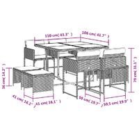 $456.62This garden dining set is a great choice for al fresco dining or just relaxing in the garden, backyard, or on the patio. Durable material: PE rattan, also known as poly rattan, is a strong, low-maintenance synthetic material that looks like natural rattan. It's lightweight, easy to clean, and commonly used for outdoor furniture due to its durability and weather-resistant properties.Compact storage: These chairs have a flap backrest that can be folded down, making it easy to store them under the table. When folded, they neatly fit under the table, forming a space-saving cube shape. Additionally, the stools can also be stored under the chairs, further maximising space efficiency.Comfortable seat experience: This outdoor furniture, complete with thickly padded cushions, offers a comfortable seating experience.Removable and washable cover: These seat cushions feature removable covers for easy washing and maintenance. The cushion covers have a flap at the back for easy attachment to the backrests.Glass tabletop: The outdoor table's top is made from strong and durable tempered glass, making it easy to clean with a damp cloth and adding a touch of elegance to your outdoor space. Good to know: To make sure your outdoor furniture stays beautiful, we recommend protecting it with a waterproof cover.