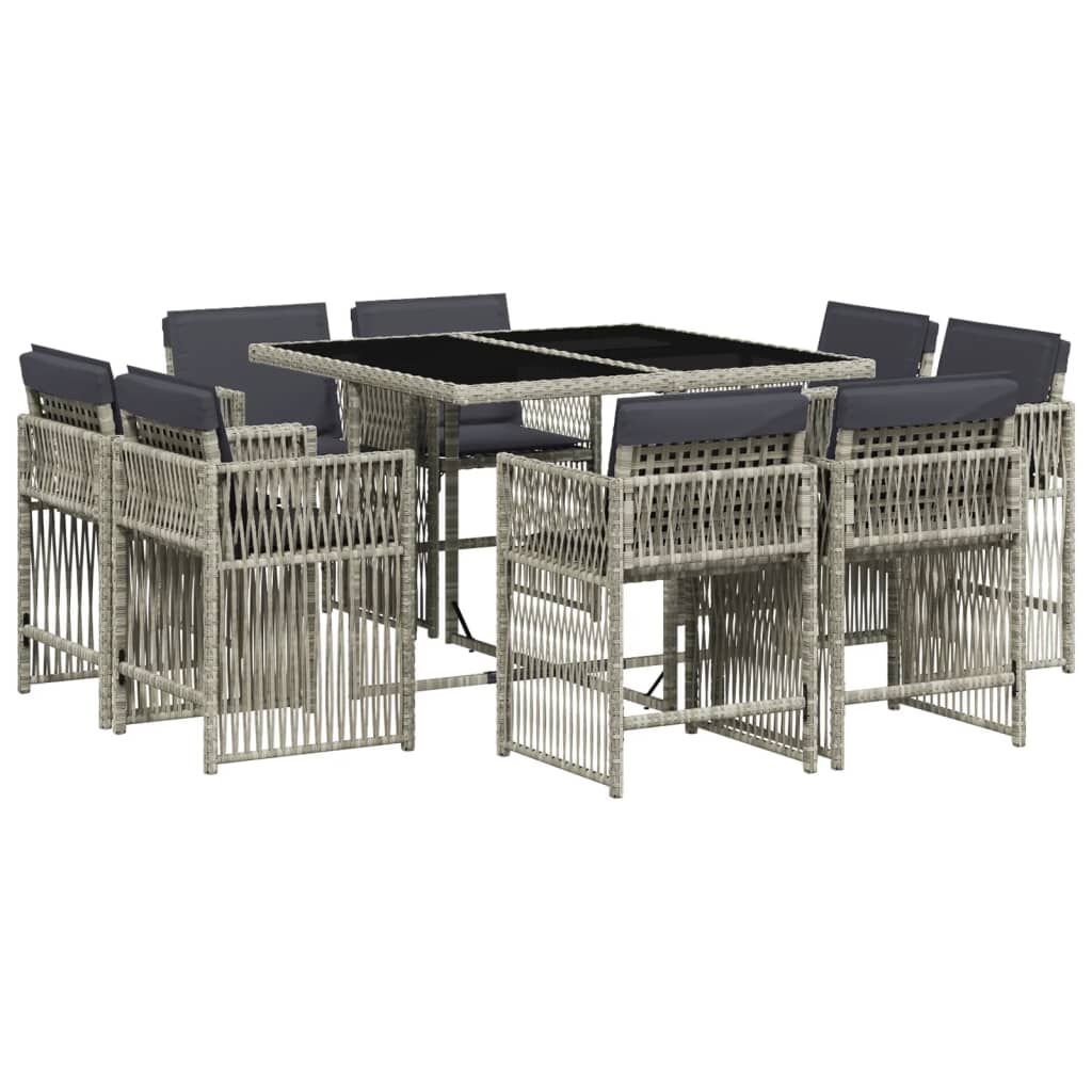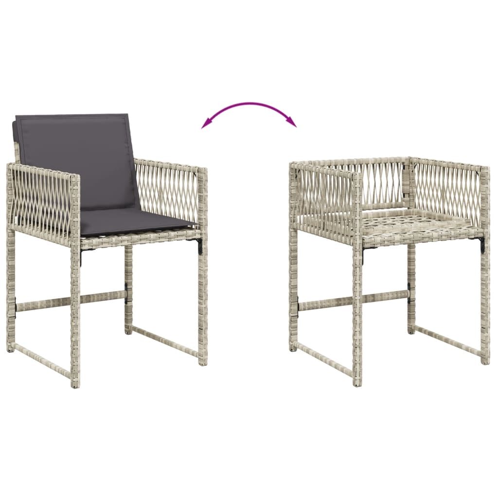 $607.28This garden dining set is a great choice for al fresco dining or just relaxing in the garden, backyard, or patio. Durable material: PE rattan, also known as poly rattan, is a strong, low-maintenance synthetic material that looks like natural rattan. It's lightweight, easy to clean, and commonly used for outdoor furniture due to its durability and weather-resistant properties.Compact storage: These chairs have a flap backrest that can be folded down, making it easy to store them under the table. When folded, they neatly fit under the table, forming a space-saving cube shape.Comfortable seat experience: This outdoor furniture, complete with thickly padded cushions, offers a comfortable seating experience.Removable and washable cover: These seat cushions feature removable covers for easy washing and maintenance. The cushion covers have a flap at the back for easy attachment to the backrests.Glass tabletop: The outdoor table's top is made from strong and durable tempered glass, making it easy to clean with a damp cloth and adding a touch of elegance to your outdoor space. Good to know:To make sure your outdoor furniture stays beautiful, we recommend protecting it with a waterproof cover.