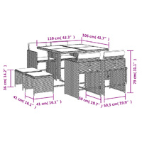 $555.20This garden dining set is a great choice for al fresco dining or just relaxing in the garden, backyard, or on the patio. Durable material: PE rattan, also known as poly rattan, is a strong, low-maintenance synthetic material that looks like natural rattan. It's lightweight, easy to clean, and commonly used for outdoor furniture due to its durability and weather-resistant properties.Compact storage: These chairs have a flap backrest that can be folded down, making it easy to store them under the table. When folded, they neatly fit under the table, forming a space-saving cube shape. Additionally, the stools can also be stored under the chairs, further maximizing space efficiency.Comfortable seat experience: This outdoor furniture, complete with thickly padded cushions, offers a comfortable seating experience.Removable and washable cover: These seat cushions feature removable covers for easy washing and maintenance. The chair cushion covers have a flap at the back for easy attachment to the chairs.Stable and easy-to-clean tabletop: This garden table has a tempered glass table top that is sturdy, durable, and easy to clean with a damp cloth. Good to know: To make sure your outdoor furniture stays beautiful, we recommend protecting it with a waterproof cover.