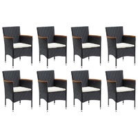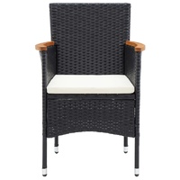 $1,065.77This garden dining set is a perfect combination of style and functionality and is meant to be the focal point of your garden, balcony or patio. Sturdy steel frame wrapped with weather-resistant PE rattan, the garden chairs are rust and mildew proof, providing years of quality relaxation. The armrests are beautifully decorated with solid acacia wood with a natural oil finish, which brings a sense of rustic charm. The outdoor table features a WPC tabletop, which is easy to clean and suitable for outdoor use. The aluminium frame also ensures stability and sturdiness. Additionally, the thickly padded cushions provide ultimate comfort during your sitting time. This patio dining set is easy to move with the lightweight construction. Note: In order to extend the life of your outdoor furniture, we recommend you to clean it regularly and do not leave it outdoors without protection unnecessarily.Clean: Use a mild soap solution.Storing: If possible, store in a cool, dry place indoors. If the product is stored outdoors, protect it with a waterproof cover. Wipe and dry the excess water or snow from flat surfaces after a rain or snowfall. Allow sufficient air circulation to avoid moisture-related damage.