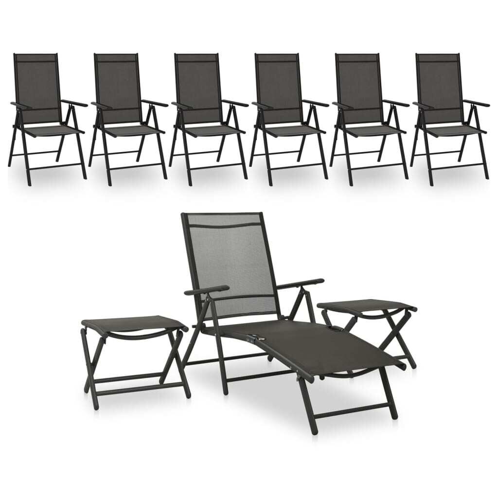 $398.69This garden lounge set, featuring a stylish and timeless design, has everything you need to relax and take a load off in the outdoors. This outdoor furniture set is made of aluminium frames, making it lightweight and easy to carry. The seats are comfortable with breathable textilene. Thanks to the adjustable backrest with 7 positions, you can always find the most comfortable position. The footstools are great for putting your feet up and also serve as additional seats for children. When not in use, each piece can be easily folded away to save space. Note: In order to extend the life of your outdoor furniture, we recommend you to clean it regularly and do not leave it outdoors without protection unnecessarily.Clean: Use a mild soap solutionStoring: If possible, store in a cool, dry place indoors. If the product is stored outdoors, protect it with a waterproof cover. Wipe and dry the excess water or snow from flat surfaces after a rain or snowfall. Allow sufficient air circulation to avoid moisture-related damage.
