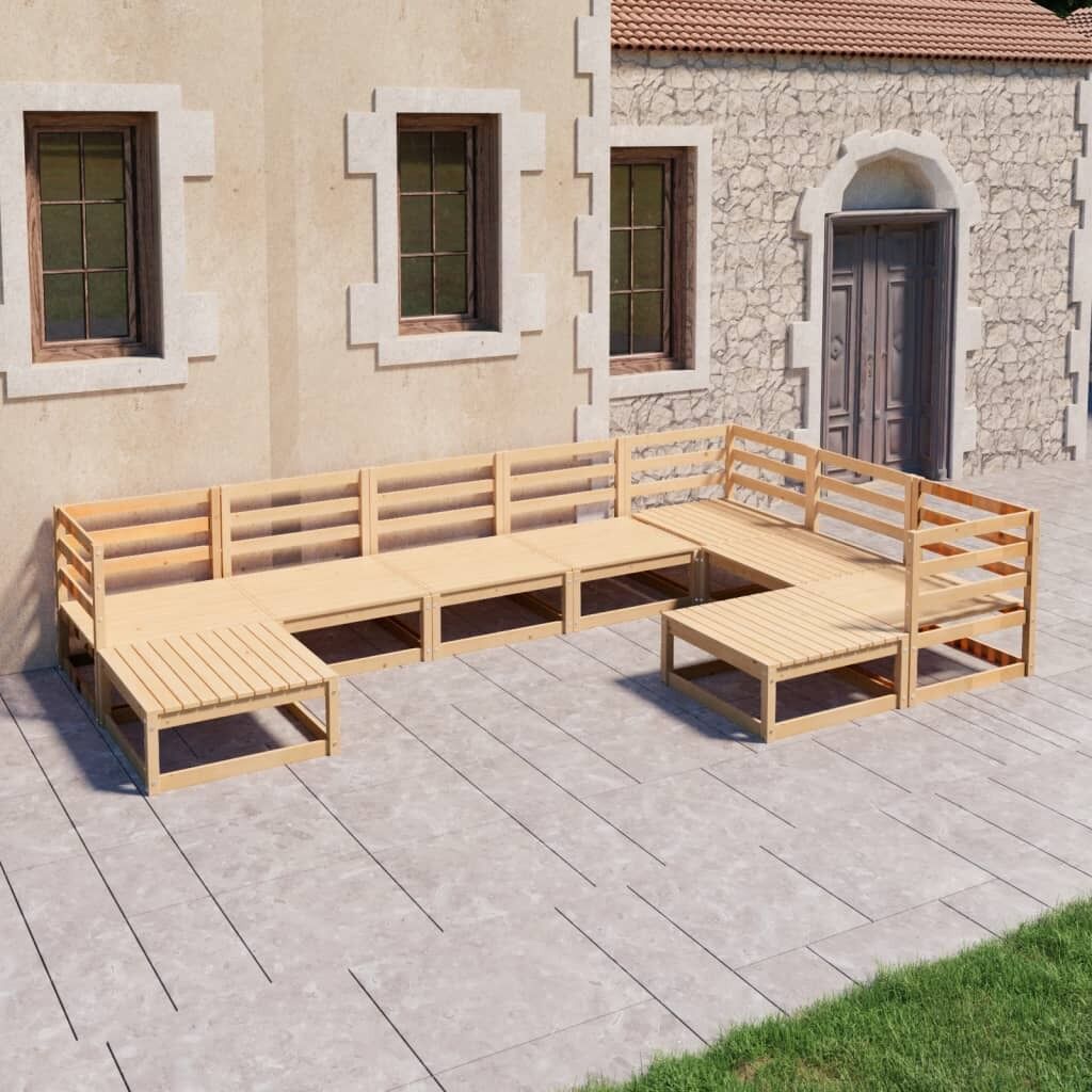 $507.59This classic solid pinewood garden lounge set is an excellent choice for you to relax and enjoy the weather, take a nap, or chat with your family or friends. The sofa set is made of solid pinewood, making it sturdy and stable. This set has a solid construction and requires little maintenance. With a timeless pallet design, this set adds a touch of rustic charm to your living space. Note: In order to extend the life of your outdoor furniture, we recommend you to clean it regularly and do not leave it outdoors without protection unnecessarily.Clean: Use a mild soap solution.Storing: If possible, store in a cool, dry place indoors. If the product is stored outdoors, protect it with a waterproof cover. Wipe and dry the excess water or snow from flat surfaces after a rain or snowfall. Allow sufficient air circulation to avoid moisture-related damage.