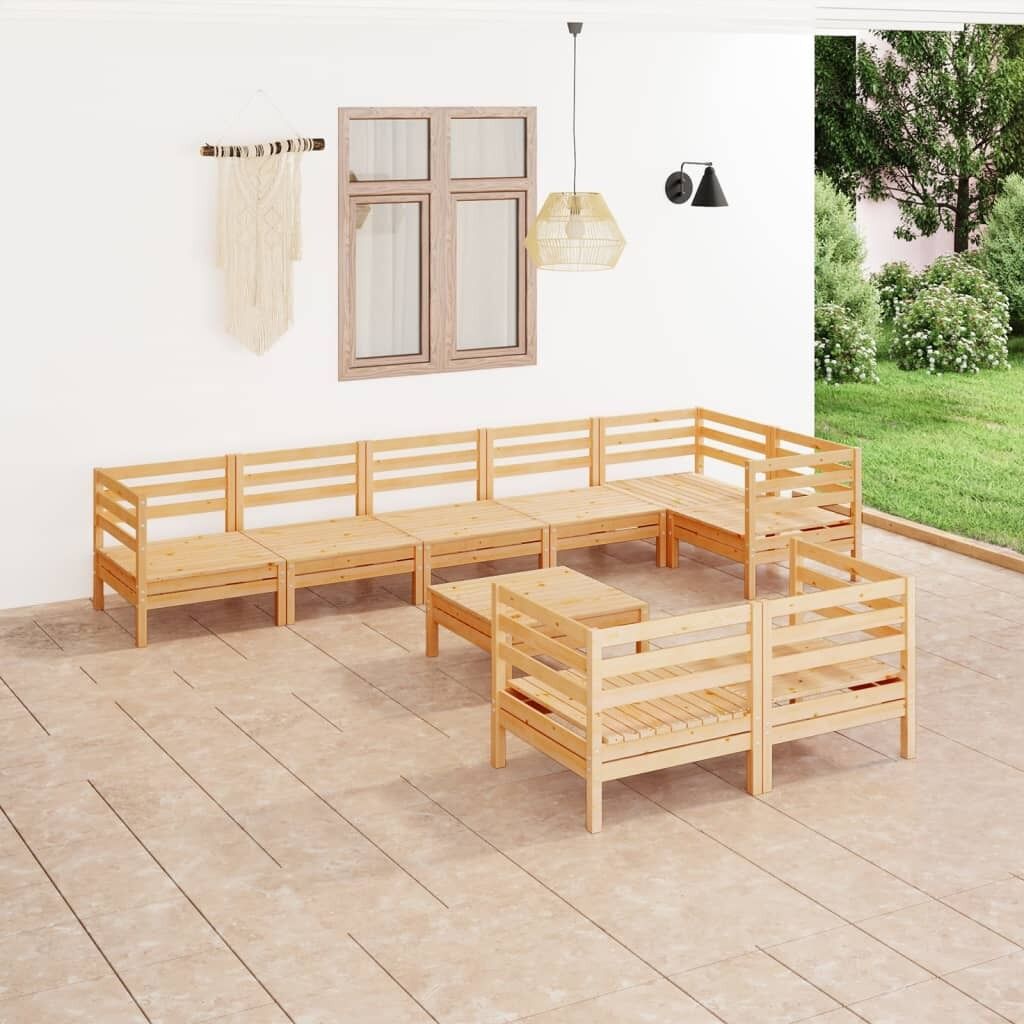 This wooden garden lounge set is an ideal choice for you to relax and enjoy the weather, take a nap or have a chat with your family or friends. With a timeless pallet design, the wooden sofa set adds a touch of rustic charm to your patio, garden or living room. Made of solid pinewood, this outdoor furniture set is highly durable, weather-resistant and environmental friendly. This sofa set has a solid construction and requires little maintenance. Additionally, the modular design also makes it possible to place the set in any arrangement as per your taste. Note: In order to extend the life of your outdoor furniture, we recommend you to clean it regularly and do not leave it outdoors without protection unnecessarily.Clean: Use a mild soap solution.Storing: If possible, store in a cool, dry place indoors. If the product is stored outdoors, protect it with a waterproof cover. Wipe and dry the excess water or snow from flat surfaces after a rain or snowfall. Allow sufficient air circulation to avoid moisture-related damage.