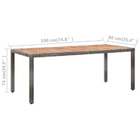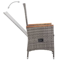 $1,289.86Our stylish poly rattan garden furniture set will become the focal point of your garden or patio! This rattan dining set has an elegant, contemporary design and will be a great choice for al fresco dining or relaxing in the garden. Made of weather- and water-resistant PE rattan, the dining set is easy to clean, hard-wearing and suitable for daily use. The powder-coated steel frames make the table and chairs strong and sturdy. The tabletop and the armrests are made of acacia wood, a tropical hard wood, which will bring a rustic charm. 2 of the 8 chairs are reclining chairs thanks to the adjustable back. By touching the button on the side, the backrest will recline. Thanks to their lightweight construction, all items are easy to move. The thick, soft, foam-filled seat cushions are highly comfortable and made of water-repellent polyester. The cushion covers with zips can be easily removed and washed. This garden furniture set includes 1 table, 8 high back chairs and 8 cushions. Note: We recommend covering the set in the rain, snow and frost.